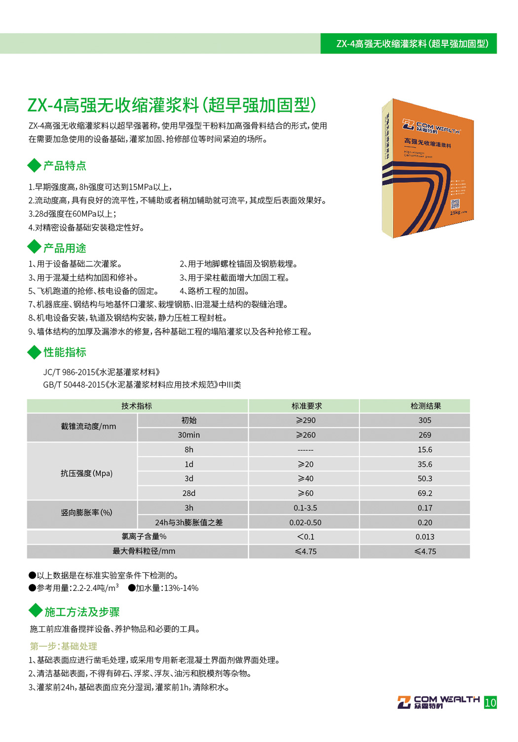 ZX-4/CGM-4高強無收縮灌漿料(超早強加固型)