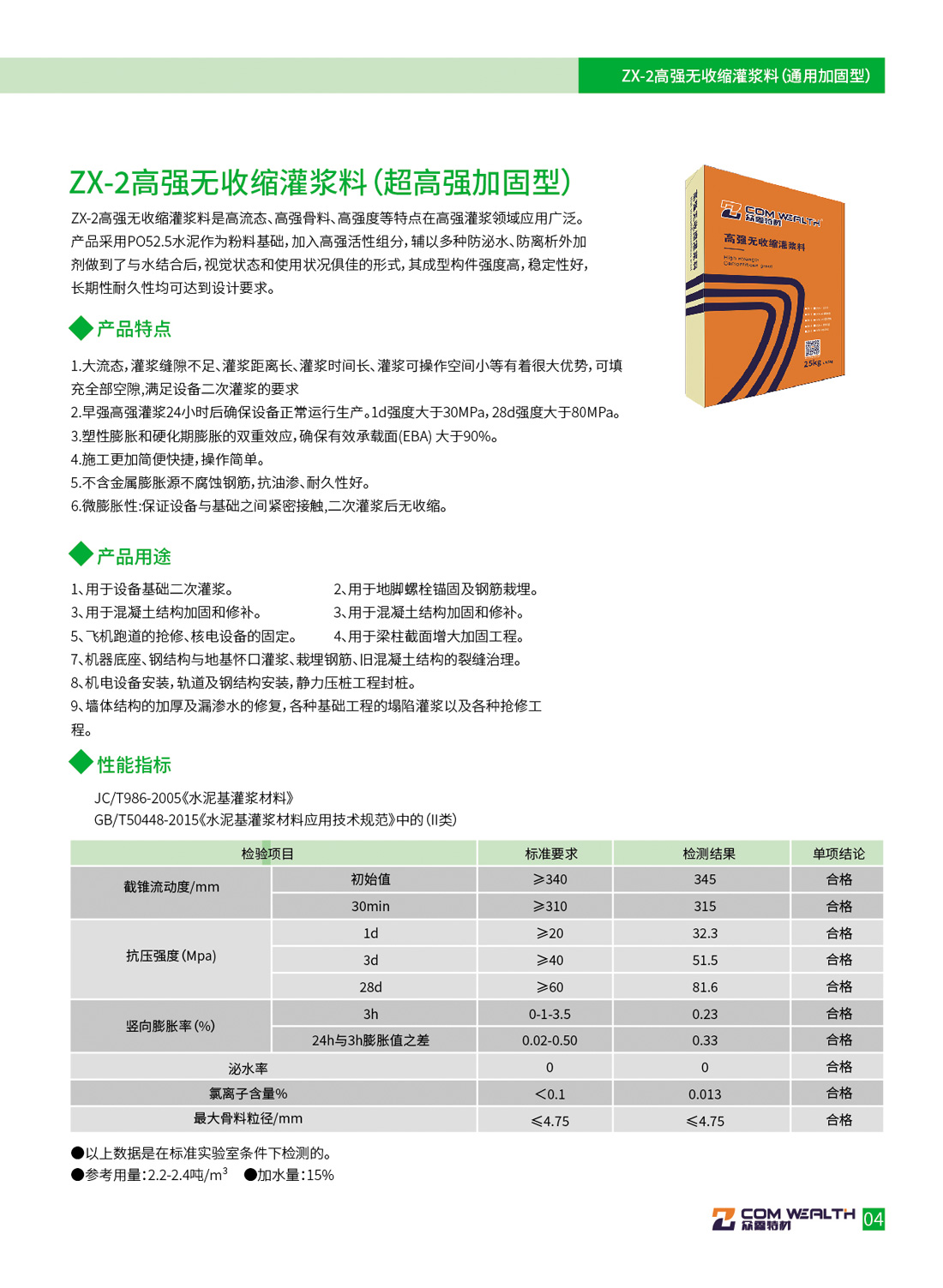 ZX-2/CGM-80高強無收縮灌漿料(超高強加固型)