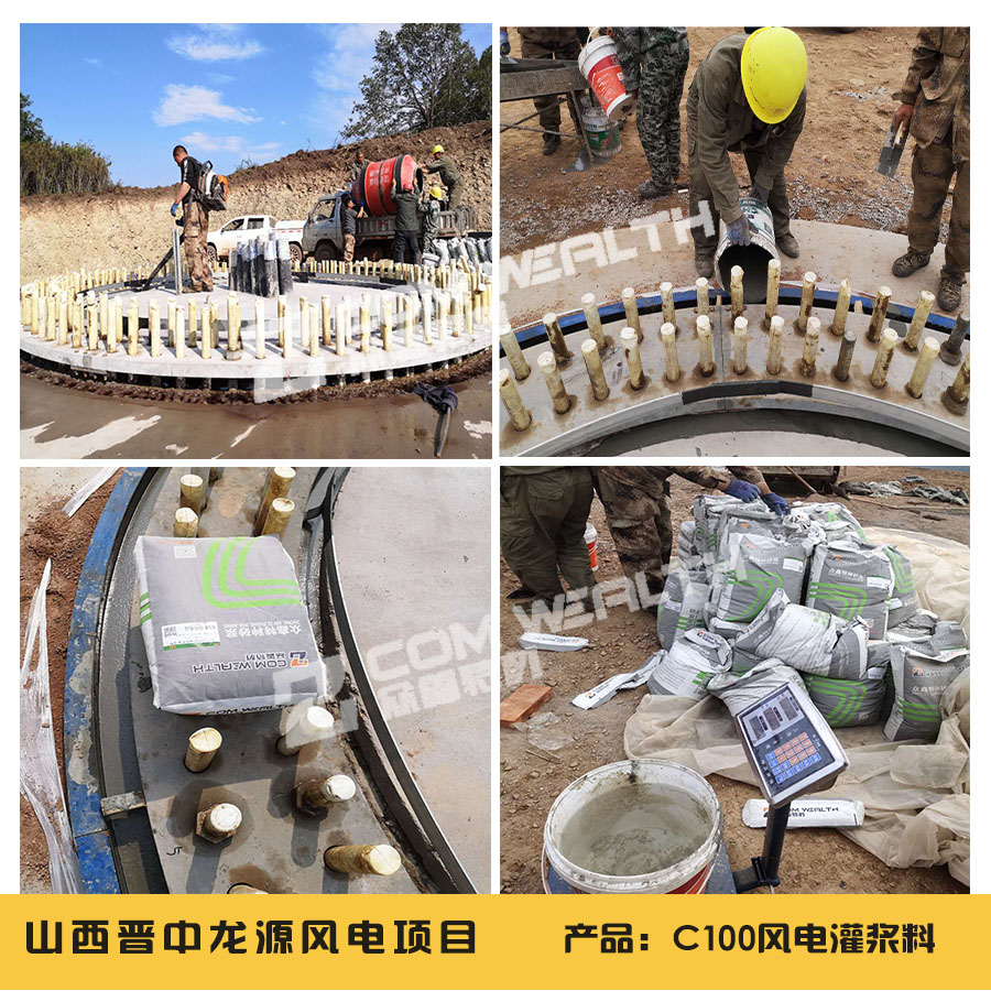 山西晉中龍源陸上風電基礎底座加固項目,應用于我司C100風電灌漿料產品